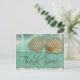 Cartão Postal Obrigado azul-aqua - com conchas no mar