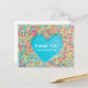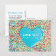 Com confeitos coloridos formando um coração, agradecendo em um cartão-postal para uma festa de bebê com chuva de bênçãos. No verso do cartão-postal, adicione sua mensagem. Se precisar de itens combinados ou ajuda, por favor entre em contato.