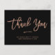 Este cartão-postal moderno e na moda, preto ou para pequenas empresas apresenta as palavras "obrigado você" na moda, faux rosa gold look handwrite script typografia. Adicione o nome da sua empresa ou empresa e o site ou outras informações para um obrigado que os seus clientes corporativos desejarão mostrar.