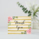 Cartão Postal Obrigado Calliografia Script Dourado Floral Strips