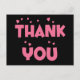 Descanse o dia de alguém com uma nota de agradecimento manuscrita! Este cartaz encantador apresenta um cor-de-rosa Obrigado saudando com uma fonte cardíaca divertida destacada contra um fundo preto cremoso. Obrigado Cartões-postais são um alternativo econômico para cumprimentar cartões quando você quer enviar uma rápida nota de obrigados. Obrigado Cartões-postais são excelentes para muitas ocasiões... Uso pessoal Negócios - comunique com clientes e Partes, Casamentos, Chás de panela Atos de gentileza Anexar a favoritos para festas e cestos de presentes Outros produtos e presentes que você possa desfrutar.. com.