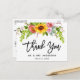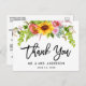 Cartão Postal Obrigado Casamento Floral Girassol Script Pincel