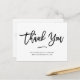 Este cartão-postal moderno e na moda, preto e branco ou para pequenas empresas apresenta as palavras "obrigado você" na tenda tipografia de scripts manuscritos. Adicione o nome da sua empresa ou empresa e o site ou outras informações para um obrigado que os seus clientes corporativos desejarão mostrar.