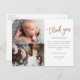 Este Cartões de agradecimentos Simple Script 3 Photo Collage Baby apresenta o obrigado de caligrafia manuscrito de rosa moderno e a mensagem pessoal na frente. Clique no botão personalizar para personalizar este design com suas fotos e detalhes.