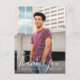 um design de cartão com fotos de sobreposição de script com uma foto personalizada. Sinta-se livre para personalizar a imagem e o obrigado que você envia no verso.