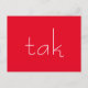 Carto de agradecimento em dinamarquês simples e fofo em vermelho e branco, o idioma da Dinamarca. Tak em Vermelho e Branco, as cores da bandeira dinamarquesa. Veja nossos outros cartões internacionais em www.zazzle.com/windydesign