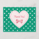 Um obrigado bonito que você faz com um padrão esmeralda de bolinhas verde e um adesivo em forma de coração, colado a rosa, embelezado com uma fita rosa bonito. Imagem impressa plana, não arco real.