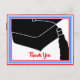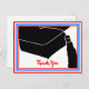 Escreva as suas notas de agradecimento com este Cartão-postal Obrigado a Formando Boné Vermelho, Branco e Azul. Ele apresenta um boné de formando de tamanho excessivo com 'Obrigado' em uma fonte vermelha de script moderno. Personalize-o com uma nota atrás.