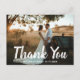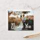 Cartões de agradecimentos moderno com o roteiro de pincel e sua foto de casamento. Adiciona também a mensagem e a foto do seu obrigado no verso.