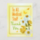 Obrigado aos nossos enfermeiros, médicos, assistentes de saúde, assistentes de saúde e todos os funcionarios médicos de linha de frente. Daffodil floral watercolor temático branco e amarelo flores mais borboletas voando para cima.