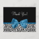Personalize este obrigado de padrão de impressão preto e branco-leopardo em tendências que você faz, com um na moda cobalto ou fita azul Mykonos amarrada em um arco giro, adicionando uma mensagem personalizada a uma área de texto personalizável. Este cartão de posto de estilo moderno faz parte da Coleção de Moedas de Impressão Animal. Imagem impressa plana, não fita real.