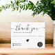 Obrigado moderno minimalista de pedidos de negócios brancos e negros. Adicione sua mídia social. Com uma fonte elegante de script de assinatura, todas as cores são editáveis, adicione seu logotipo.