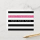 Cartão Postal Obrigado Moderno Black White Strips Rosa Brilhante