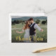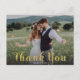 Uma mensagem de agradecimento em letra de pincel dourada e sobreposição de gradiente escuro sobre sua foto de casamento favorita nota de gratidão. Use o espaço em branco no verso para escrever à mão uma mensagem pessoal para amigos e familiares. Este design pode ser adaptado para layouts de fotos em paisagem ou retrato.