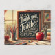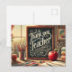 Aqui está o seu cartão postal do Dia do Professor em estilo aquarela! 🎨📚 A imagem apresenta uma lousa vintage com caligrafia branca elegante que diz "Obrigado, Professor!", juntamente com elementos clássicos de maçã e livros em uma sala de aula aconchegante.