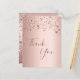 Um fundo de aparência metálica falsa rosa dourado. Com rosa dourado, estrelas espumantes de cor de cobre. Na frente, um grande e escuro, rosa dourado, escrita à mão, colorida, e o texto: Obrigado. Fundo rosa e estrelas. Espaço para você escrever manualmente.