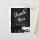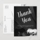 Um lindo cartão-postal de agradecimento com tema de casamento de unicórnio quadrado. O design apresenta os nomes dos noivos e um unicórnio preto e prata. Mostrado em preto e prata com um fundo de redemoinho preto elegante. Personalizável com os detalhes do seu casamento de agradecimento. Criado por Robin D. Cox.