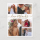 Mínimo Elegante Dourado "Amor e obrigados" Escrito 5 Foto Colagem Casamento Obrigado Cartão-Postal. Cartões de agradecimentos de casamento moderno com cinco (5) fotos na frente e uma (1) foto no verso. Com o texto "Amor e obrigados" em um robusto guiado de letras tipográficas, o script de fontes swash tail em ouro com cores de fundo brancas. Adicione o seu nome, as suas fotografias e o seu obrigado. Se preferir escrever manualmente a sua nota, basta eliminar o texto de amostra para obter mais espaço. Por favor, entre em contato comigo se precisar de ajuda com este design.