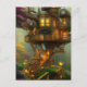 Belo cartão postal criado usando o software de renderização AI apresenta uma casa de árvore e observatório estilo Steampunk com cômodos e janelas redondas.
