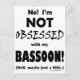 Não, não estou obcecado com a minha Bassoon! (Bem, talvez só um pouco!) É música para você mais do que apenas uma diversão, ou até mesmo uma paixão? É mais como uma obsessão? Veja todas as nossas designs musicais em copos, canecas, camisetas, camisas, chapéus e outros presentes e roupas.