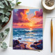 Cartão Postal Ocean Sunset Pastel Watercolor Beach