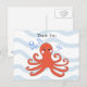 Um polvo de desenho animado com um rosto bonito colocado contra um fundo oceânico ondulado, cercado por bolhas oceânicas, e acompanhado pelas palavras 'obrigado você' pode ser mudado como desejado.