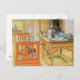 O escritório de Carl Larsson com sua garotinha a espreitar pelos degraus de um banco de laranja. O fundo inclui mesa com os artistas escovas e suprimentos. É uma cena da casa do artista.