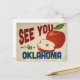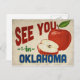 Um cartão postal encantador de viagens vintage de Oklahoma com uma adorável maçã vermelha, juntamente com um texto divertido no estilo retrô que diz, "Até em Oklahoma"