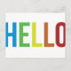 Saudações ao mundo sem dizer uma palavra. Diz "olá" com cada letra de uma cor diferente do arco-íris.