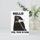 Originalmente visto no sub-reddit r/engraçado de reddit.com, o meme "Hello This is Dog" deriva de uma fotografia hilária de um Labrador Retriever negro, com um corderetelone preso à cabeça. A expressão do cão e o texto absurdo que a acompanha, "OLÁ SIM, ESTE É O CACHORRO", rapidamente se tornou um meme muito popular, muitas vezes alterado em várias outras formas comédicas.