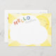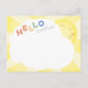 Mande sol para alguém que você ama com este cartão postal ilustrado com luz solar, com texto colorido, arco-íris dizendo "OLÁ, sol". Cartão de nota correspondente, cartão postal e itens adicionais disponíveis por Janelle Wourms Design.