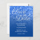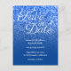 Uma imagem de gradiente azul profundo e uma foto falsa de brilho para o seu casamento, salve as datas. Se você quiser um pouco menos de brilho de um bokeh desfocado para o fundo da sua gliteria, você pode sacudir a foto. Personalize o texto necessário para o seu casamento na frente. Adicione texto ao verso, se quiser.