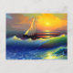 Cartão Postal Ondas oceânicas, veleiro e reflexo solar