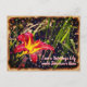 Uma fotografia de um lírio do dia vermelho e amarelo, com gotas de água nas pétalas e folhas. Personalize o texto se desejar.