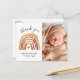 Estes chás de fraldas adoráveis agradecem-lhe as cartas que apresentam estilo 'boho' e roteiro manuscrito de tendências. Este maravilhoso anúncio e cartões de agradecimentos de chegada de bebês elegantes inclui duas fotos (uma de cada lado) e a tipografia clássica. Na frente, há um belo anúncio de bebê recém-nascido que inclui um nome, data de nascimento, altura e peso sob a cor d'água do boho, neutro, laranja, pintado arco-íris e um detalhe adorável de um coração dentro dele. A parte lateral apresenta a foto vertical. A parte de trás apresenta um obrigado que você envia (você pode usá-lo para obrigado sobre presentes no chá de fraldas e o cuidado e atenção que você teve durante a gravidez). Há também uma segunda foto horizontal. Para personalizar este cartão, basta clicar no botão "Personalizar" e mudar todos os detalhes, incluindo fotos, para o seu. Embora especialmente bom para um chá de outono ou outono, este cartões de agradecimentos adorável será a forma perfeita de dizer obrigados em qualquer altura do ano. Também é perfeito para um Batismo ou para um Christening. Ficaria bem com a menina e o bebê.