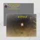 Uma fotografia de uma aranha Orb Weaver na sua Web à noite que é brilhante e colorida. Em Hutchinson Kansas EUA. Está num cartão POSTE.