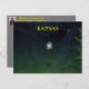 Uma fotografia de uma aranha Orb Weaver na sua Web à noite que é brilhante e colorida. Em Hutchinson Kansas EUA. Está num cartão POSTE.
