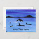 Uma pintura em aquarela de um grupo de Orcas contra um céu estrelado e noturno é apresentada neste cartão postal personalizável. Personalize alterando o texto para se adequar ao seu gosto!