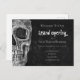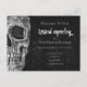 Cartaz do orçamento de negócios Grande Abertura da cabeça do crânio Gótico. Design de textura única e criativa a preto e branco. Materiais para marketing profissionais de tatuagem. Legal, moderna, moderna, assustadora vintage inspirada. Personalize sua tipografia. Feche o crânio na parte traseira da placa. Imagem copyright Marg Seregelyi Fotografia.