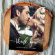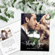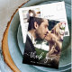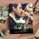 Moderno Elegante Escrito Foto de Casamento de Script Obrigado postal. Obrigado de casamento do Na moda moderno seu modelo de cartão postal com uma foto vertical do cheio na frente com o texto sobreposto "Obrigado" em uma fonte de script de tipografia escrita à mão, em branco, na foto. Personalize o nome personalizado e a mensagem do obrigado. Se preferir escrever manualmente a sua nota, basta eliminar o texto de amostra para obter mais espaço. Se você precisar de ajuda ou item correspondente, entre em contato comigo!