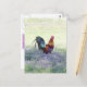 Um galo colorido no campo.