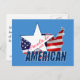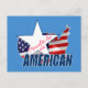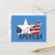 Bandeira americana na forma do mapa dos EUA, estrela branca com contorno azul, texto vermelho e azul Orgulhoso de ser americano. O Dia da Independência e outras ocasiões presentes e lembranças patrióticos para qualquer um. Cartão postal para qualquer um. Personalizável. Você pode alterar a imagem e pode alterar ou excluir o texto modelo na parte traseira da placa. Aproveite o Dia da Independência!