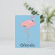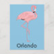 Orlando Flórida rosa flamingo colocado sobre uma perna retro estilo kitsch cartão postal com fundo azul. Excelentes nos layouts de páginas de álbuns ou no jornal de viagem sobre suas férias em Orlando e os parques temáticos.
