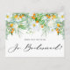 Você será minha dama de honra? Peça à família e aos amigos que façam parte do seu casamento com este cartão de festa floral tropical. Apresenta uma granja floral de cor aquática ou orquídeas brancas, verde e kumquats. Personalize adicionando nomes, mensagens e outros detalhes. Este cartão de proposta de orquídeas jr bridesmaid é perfeito para casamentos tropicais e de verão.