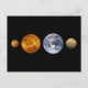 A imagem é uma combinação de fotografias de cada um dos planetas internos (Mercúrio, Vênus, Terra e Marte) em nosso sistema solar. Esta é Astronomy on Postcards Series no. 1 de citysidewalk.