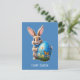 Ein hübscher Osterhase mit blauer Schleife und Osterei. Digital erstellt.
