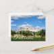 Cartão postal de uma paisagem na Apúlia, Itália, com a cidade branca (citta bianca) Ostuni numa colina acima de um pomar de oliveira sob um céu nublado com o texto: "Ostuni".