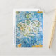 A pintura é de um anjo branco e dourado com sotaques verdes cercados por céu azul girando e corações ouros. Os anjos têm um coração branco em vez de um halo acima da cabeça do anjo. Personalize este cartão e torne-o pessoal com o seu próprio texto.