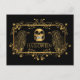 Este design apresenta um crânio de ouro metálico acima do texto "Halloween" flanqueado por dois corvos em um quadro de ornamentado. #halloween #feriado #ouro #negro #crânio