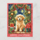 Cartão Postal Ouro Retriever Feliz Natal Cachorro de Cachorro